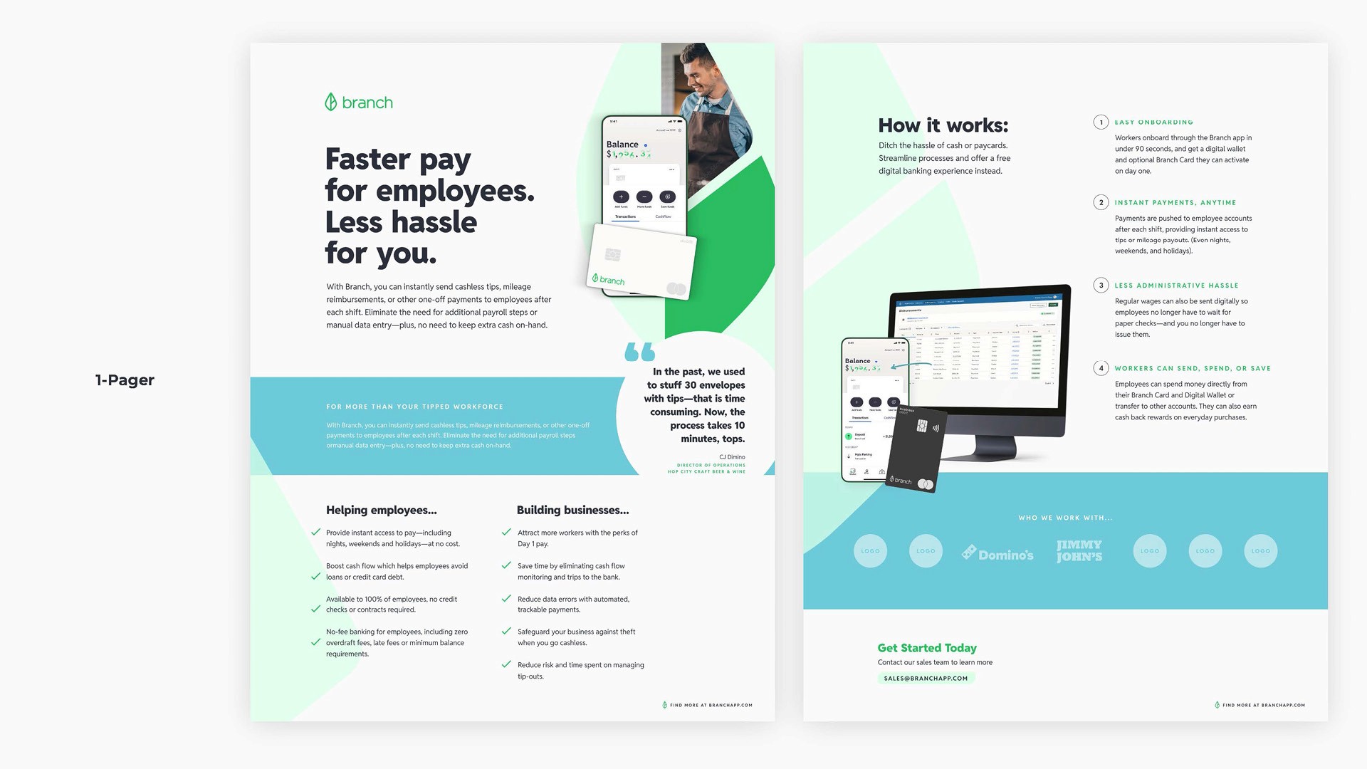 The refreshed brand gives Branch a clear, differentiated voice in fintech. One that speaks to businesses while standing firmly on the side of workers.